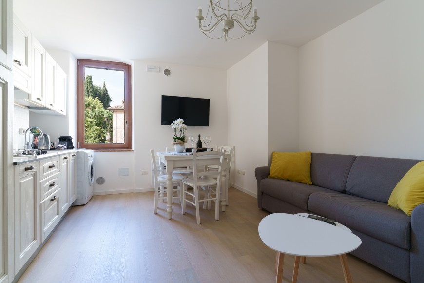 DISPONIBILITA' PER AFFITTO BREVE O PROLUNGATO DA CONCORDARE! Accogliente appartamento con ingresso indipendente e terrazza esclusiva. Benvenuti nella nostra confortevole casa vacanze, il rifugio ideale per coppie o famiglie, fino ad un massimo di 6 ospiti, che desiderano trascorrere un soggiorno rilassante. Situato in una zona centralissima al paese, tranquilla e facilmente accessibile, questo appartamento è dotato di tutti i comfort moderni per garantirvi un'esperienza indimenticabile. L'appartamento offre la possibilita di soggiornare in 6 persone, tutto appena ristrutturato, arredato e corredato con gusto per assicurare il massimo del relax. La ZONA LIVING uno spazio unico, accogliente e multifunzionale, con zona cottura moderna e attrezzata, ( forno, frigorifero, microonde, tostapane, utensili vari, stoviglie, pentolame, bollitore e lavastoviglie) è perfetta per una colazione lenta o preparare deliziosi pasti conviviali. La ZONA NOTTE è composta da una camera matrimoniale e da una camera doppia con 2 lettini. Il BAGNO completo, pensato per il benessere degli ospiti completo di asciugacapelli e tutto il necessario per la doccia. La TERRAZZA panoramica pensata e studiata per avere un pò di privacy, dove si potrà prendere il sole sui lettini, farsi una doccia rinfrescante e gustarsi un aperitivo al tramonto sullo scorcio della colline gardesane e sulla Rocca. Servizi inclusi: - Macchina da caffè nespresso - Connessione Wi-Fi con fibra veloce - Smart Tv a led di 50' pollici con Netflix - Biancheria fresca e curata ( lenzuola, doppi cuscini in memory e soffici, coperte e morbidi asciugamani per il bagno selezionati con cura ) - Aria condizionata e riscaldamento per un soggiorno piacevole in ogni stagione - Lavatrice, lavastoviglie, ferro e asse da stiro per un soggiorno senza pensieri La casa è perfetta per chi cerca un'ottima posizione, un ambiente tranquillo e la comodità di sentirsi come a casa. A pochi passi dal lungo lago, dai servizi e dalle principali attrazioni locali, potrete godervi un'esperienza unica e senza stress. I parcheggi si trovano nel raggio di 100 mt, liberi e a pagamento. Accesso H-24 e Self Check-in Non vediamo l'ora di ospitarvi!