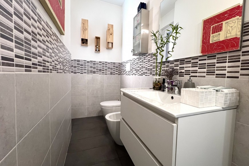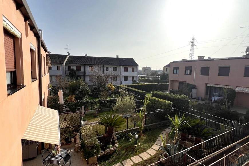 Località Casette di San Martino Buon Albergo. Inserita in contesto di 12 unità, tutte con ingresso indipendente, proponiamo villetta a schiera completamente ristrutturata, dotata di spazi ampi e ben disposti, dotata di tutti i comfort, con impianti in grado di fornire un’ottima classe energetica (A2). La soluzione è composta da ingresso indipendente, zona giorno di 32 mq molto luminosa e servita da terrazzo di 20 mq, bagno finestrato al piano terra, la zona notte si trova al piano primo ed è composta da tre camere da letto, una singola, una doppia e una matrimoniale, un bagno finestrato di 6 mq. Le finiture e gli impianti risalgono al 2016, quando la casa è stata completamente ristrutturata. La soluzione è dotata di tenda da sole, serramenti con vetrocamera in alluminio e pvc, zanzariere, tapparelle in alluminio coibentato motorizzate, stufa a pellet certificata, impianto fotovoltaico da 5,2 kw con batteria di accumulo da 10 kw, sezionale motorizzato del garage. La casa viene venduta arredata di cucina, mobile del soggiorno, divano, mobili dei bagni, camera da letto matrimoniale.