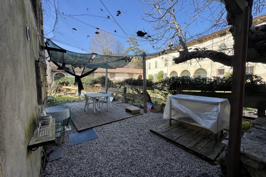 In contesto di antico casale immerso nel verde, risalente al 1.600, proponiamo porzione di immobile su due livelli con ingresso indipendente e giardino ad uso esclusivo. L'appartamento è composto da cucina/pranzo e bagno al piano terra, camera da letto più disbrigo/studio adiacente al piano superiore. L'immobile è stato ristrutturato e viene consegnato parzialmente arredato. Ideale come pied a terre o come seconda abitazione, ma soprattutto per chi vuole vivere a contatto con la natura incontaminata. Richieste referenze dimostrabili. Non ci sono spese condominiali ! Tipologia contratto breve adatto per persone single, no residenza ! Disponibilità Immediata -
